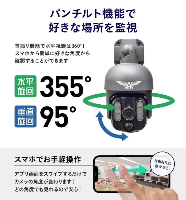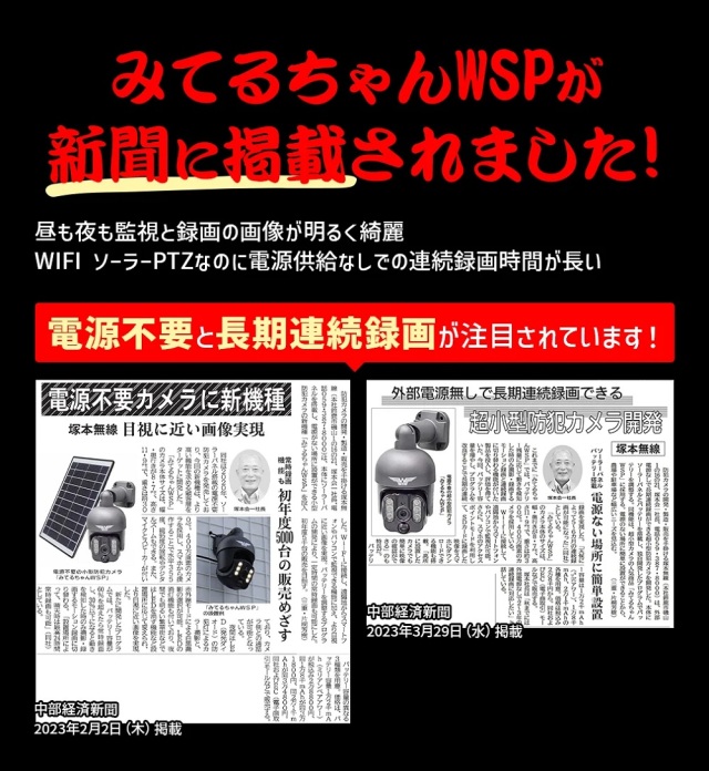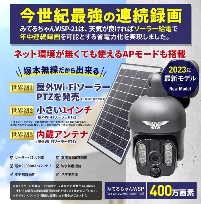 防犯カメラ パンチルト ソーラー 400万画素 屋外 双方向通話 SDカード録画 防水 ワイヤレス ドームカメラ 【 塚本無線 みてるちゃんWSP WTW-WSP12 WTW-WSP18 WTW-WSP21 microSDカードセット 】